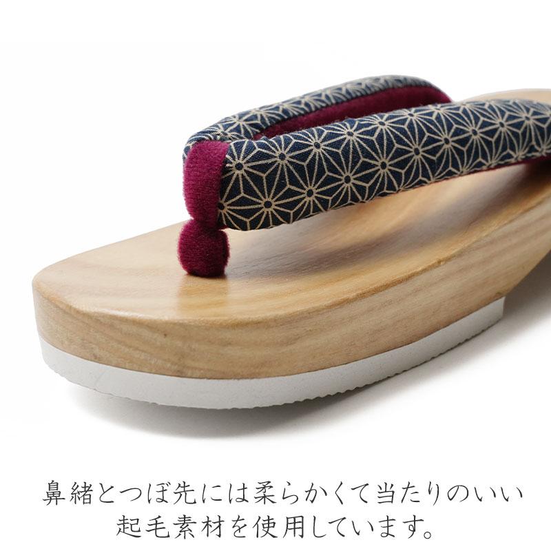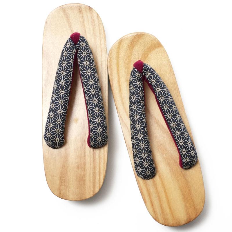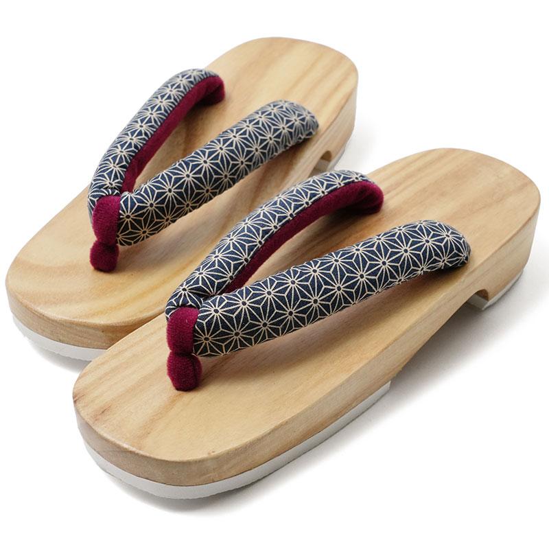 下駄 麻の葉 紺 白木 右近下駄 レトロ モダン 古典柄 伝統文様 幾何学 桐下駄 歩きやすい