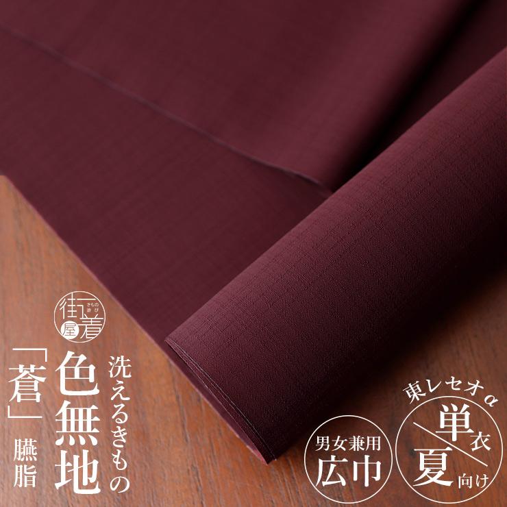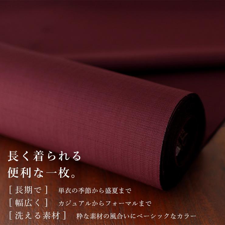男女兼用 洗える着物 東レセオα 色無地 夏着物 蒼 臙脂色 日本製 反物 えんじ色 赤紫色 涼しい 単衣 浴衣 ワイド 女性 男性 メンズ レディース お仕立て ym501s