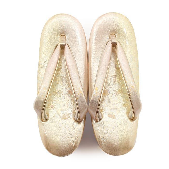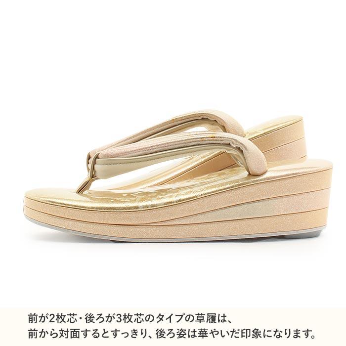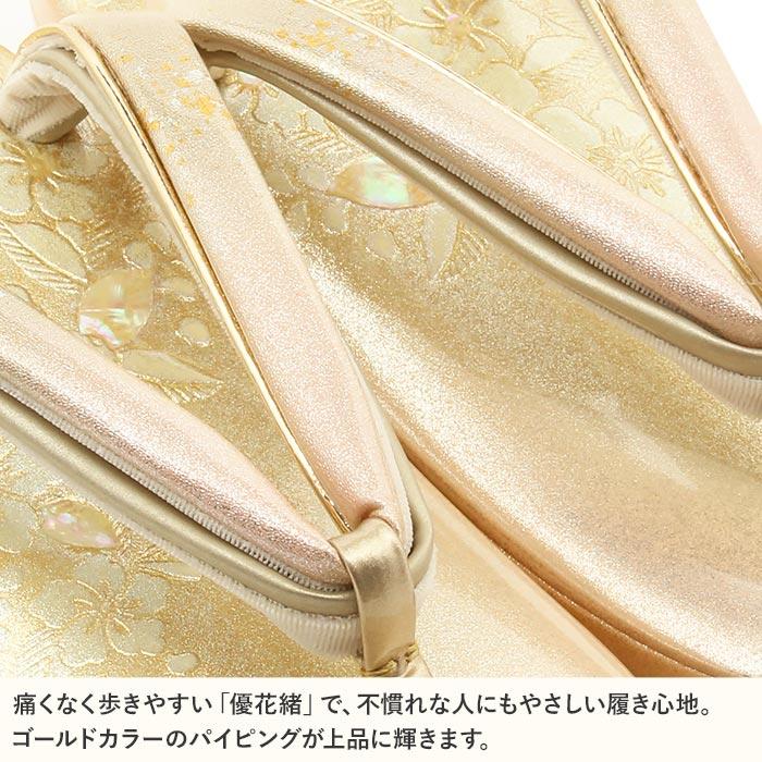Kisste 草履 留袖 訪問着 礼装用 レディース S 小さい 薄金 金 本革 本皮 型押し 螺鈿細工 辻が花 日本製 二石花緒 優花緒 SALE